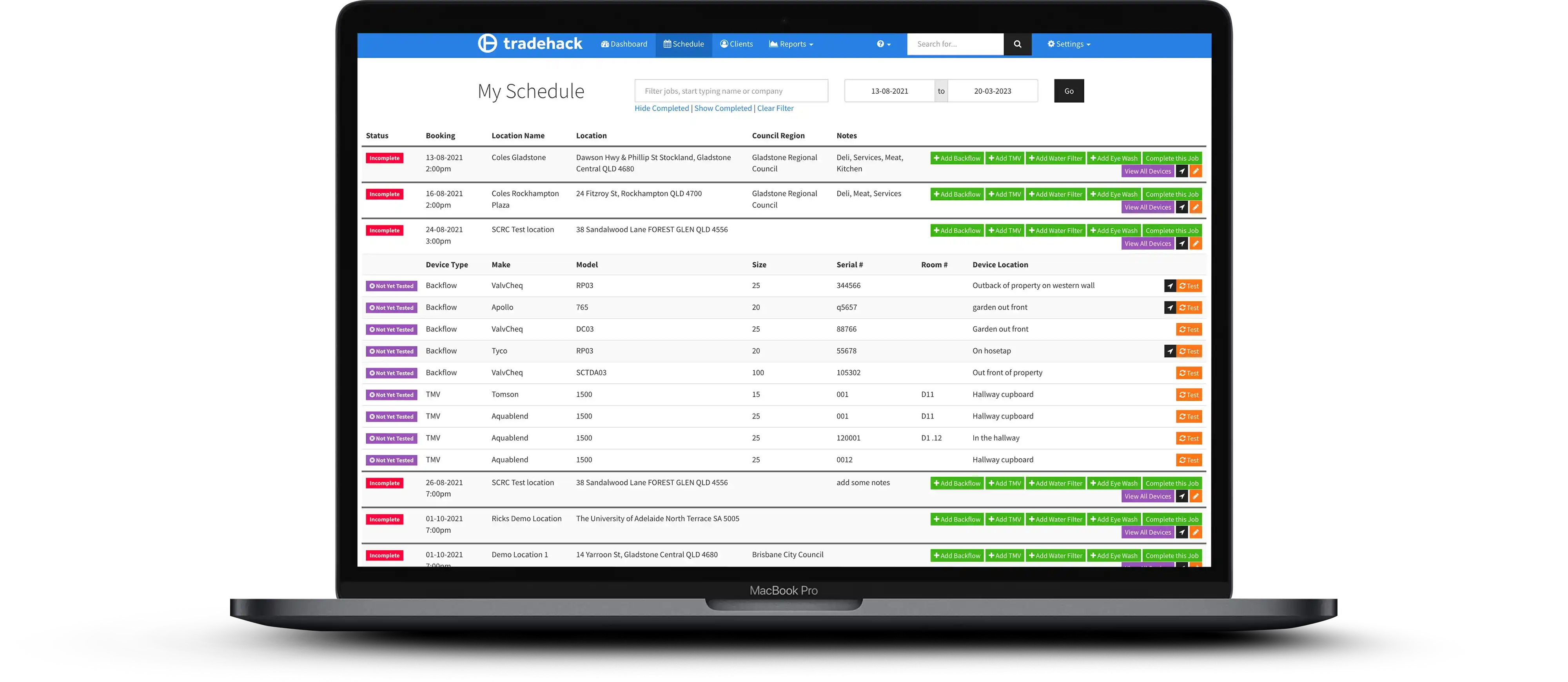 Tradehack is Australia's most trusted backflow testing software. It is a web-based application that helps you to test, monitor and report on backflow devices in your premises. With Tradehack, you can be sure that your backflow devices are working correctly and that they are compliant with the Australian Standard AS/NZ 2845.3. Tradehack is easy to use and it is available 24/7, so you can always be sure that your backflow devices are tested and compliant.